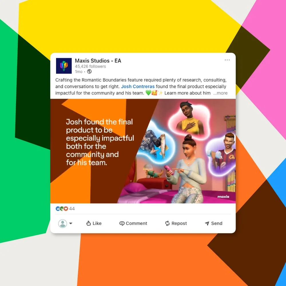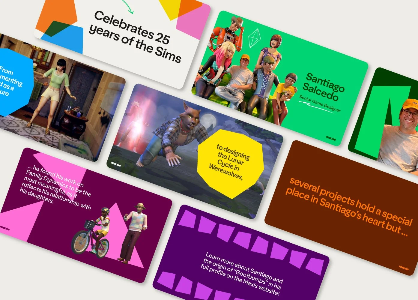 To support The Sims 25th anniversary celebration, Maxis — the primary studio behind the franchise — developed an integrated campaign centered on developer interviews. These interviews were used to produce a series of editorial blog features and a corresponding video campaign distributed on LinkedIn.
